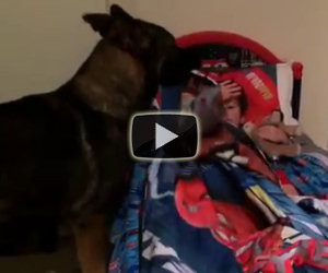 Una minacciosa tigre di peluche si è impossessata della cucina, quale sarà la reazione di questo cane appena la vedrà?