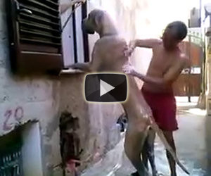 Lavare il cane non è sempre un'impresa semplice, tranne che per quest'uomo che lava il suo amico peloso in modo davvero incredibile.