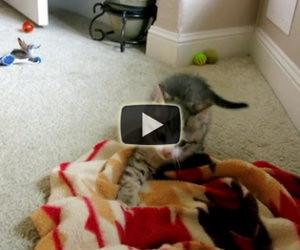 I gatti amano giocare con le cannette da pesca, a muoverle di solito però sono gli esseri umani. In questo caso tuttavia è diverso...