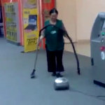 Questa donna delle pulizie fa una terribile figuraccia in un centro commerciale.