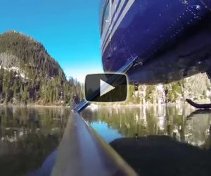 Una telecamera installata su un elicottero ci mostra un incredibile volo a pelo di ghiaccio, su un lago congelato.