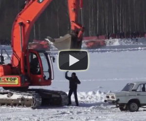 Se vi capitasse non protestate mai contro un escavatore, ciò che potrebbe succedervi è ciò che succede all'uomo di questo video.